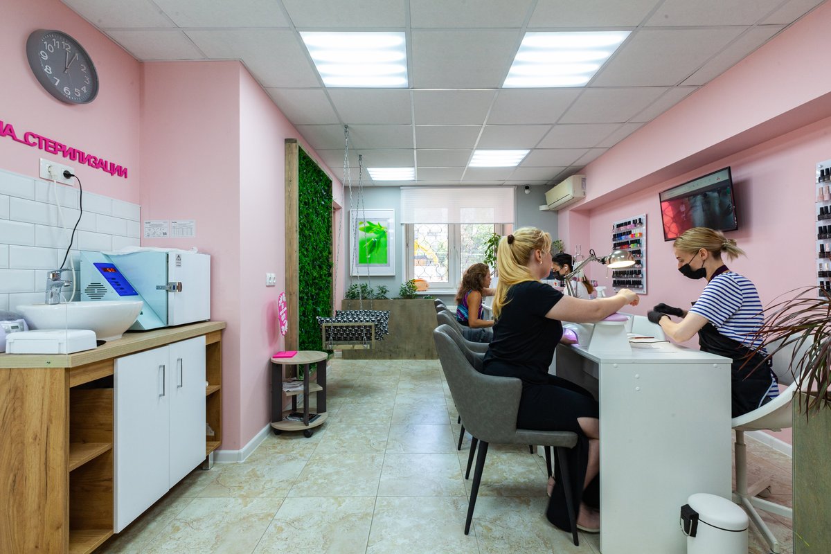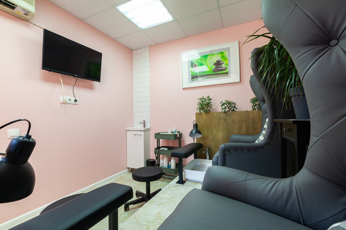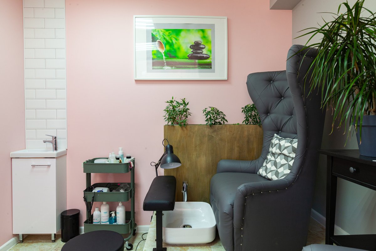 Также к услугам наших клиентов массаж, чистка лица, пилинг, мезотерапия, коррекция формы бровей, окрашивание ресниц, педикюр, в том числе аппаратный, спа-уход для ногтей. Принимает специалист по мезотерапии кожи головы.