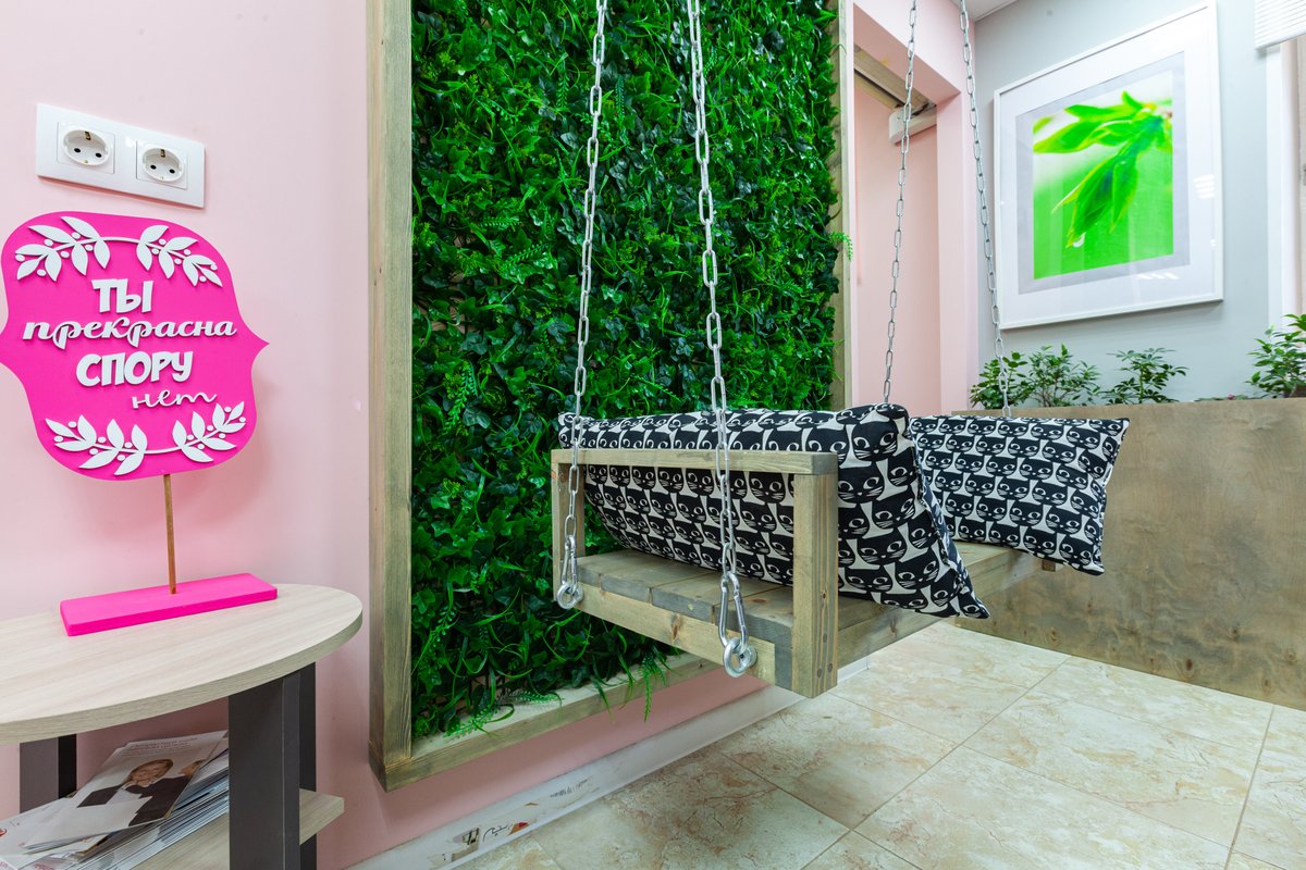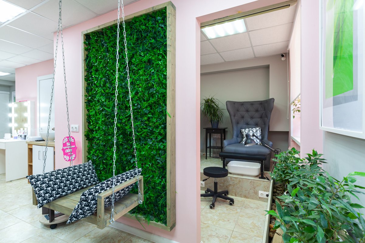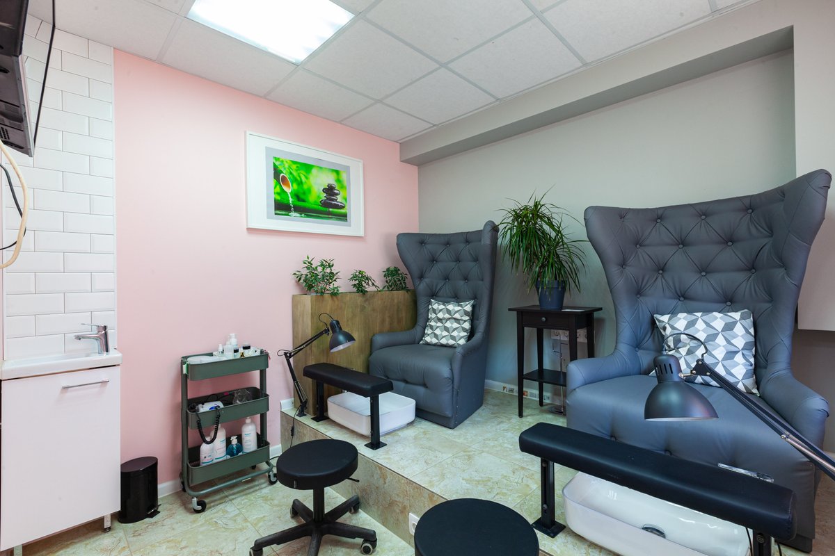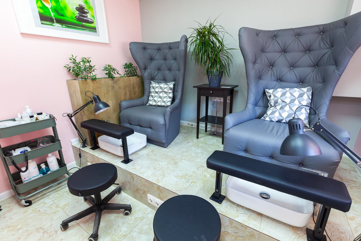 Также к услугам наших клиентов массаж, чистка лица, пилинг, мезотерапия, коррекция формы бровей, окрашивание ресниц, педикюр, в том числе аппаратный, спа-уход для ногтей. Принимает специалист по мезотерапии кожи головы.